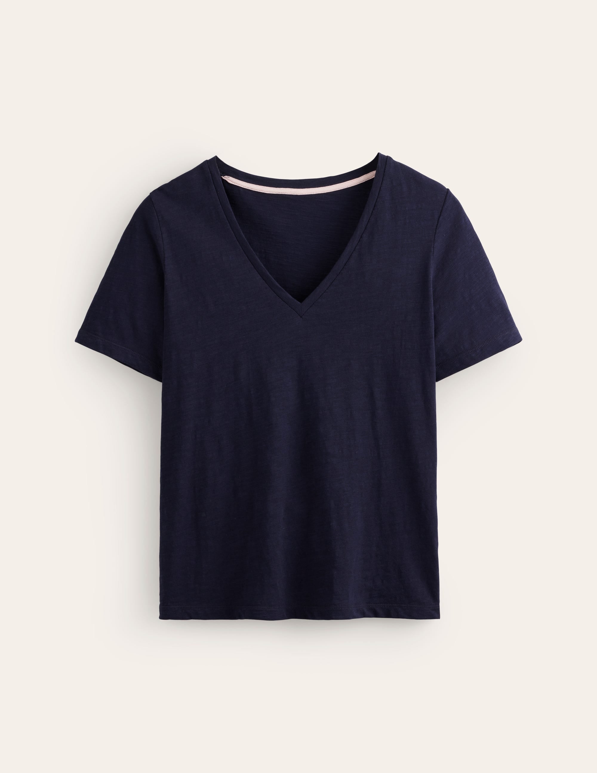 Regular V-Neck Slub T-shirt-Navy